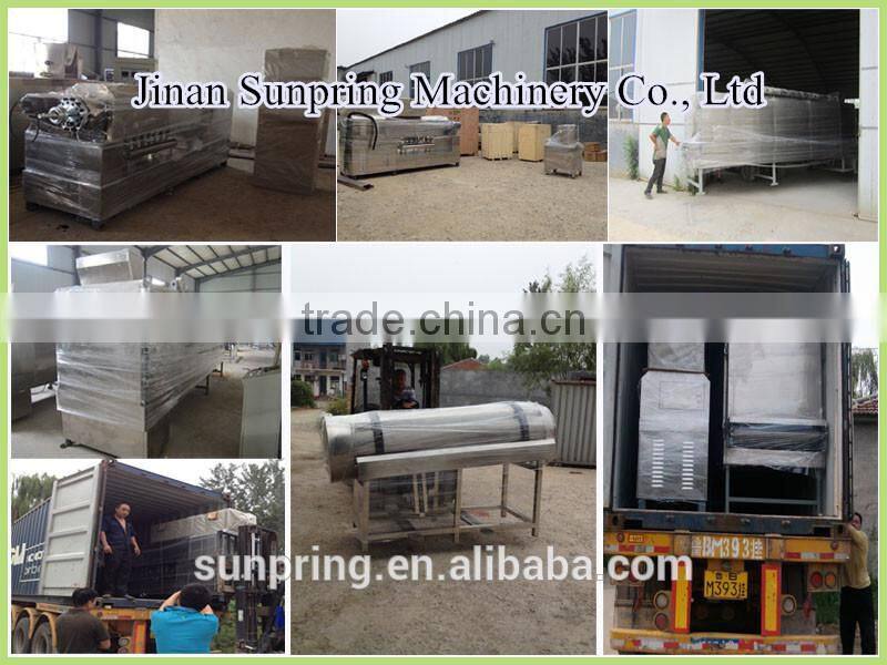 We, Jinan Sunpring Machinery & Equipment Co., LTD., is a professional food machinery manufacturer in China. An exceptional engineering team, personal customer service center and high-quality manufacturing capabilities have evolved exponentially since our humble beginnings in 2004, making us one of the preeminent providers of reliable extrusion equipment world-wide. We can guarantee customers superior quality machines up to design requirements and perfect working state. Our technicians can also provide all kinds of relevant technology to make the food production clean, healthy and safe.