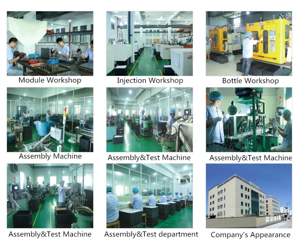 We are professionally manufacturing mist sprayer, perfume pen,Liquid dispenser, lotion pump, bottle series. We own high-quality mold design and professional manufacturing technology.A series of automatic shape forming machines, assembling and inspection equipment is functioning every day. Daliy production capability is more than 400,000 pieces for sprayer. Meanwhile more than 50,000 pieces of plastic bottles are worked out .