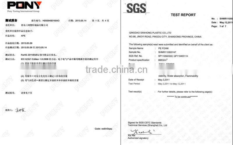 Qingdao Sanhong Plastic Co., Ltd. is located in north of the port city, Qingdao of China and was established in 2005. Total investment is 24 million and covers an area of more than 26,000 square meters. Till now, we have 150 workers and 20technical staff. We can produce 2,500 tons per each year. We have successively fetched in advanced equipments and technology.Our factory produces POLYETHYLENE foam products and main Products are XPE&IXPE. We can produce the Foam with different thickness, high&low range and also can produce the foam with SHEETS/ROLLS/BLOCKS.Just like TAEKWONDO/JUDO/KARATE mats. Anyway, different kinds of SPORTS MATS are also our main products for exporting. Our products have been saled to more than 40 countries all over the world and many of them are great brands. If you are interested in any of our products, please feel free to contact us for more information. We are looking forward to cooperating with you in the near future.