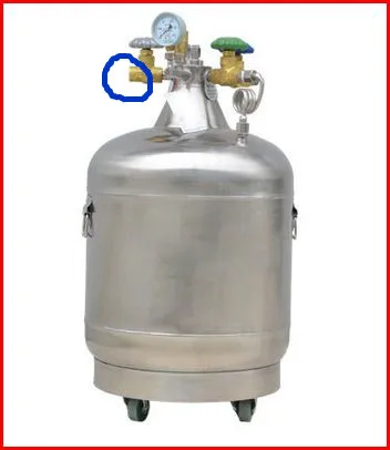 When the hose (picture 2) are connected on the valve (circled in the picture 1) of dewar, the liquid will flow through this hose, and you can cntrol the flow of liquid by controling this valve (Like picture 3).