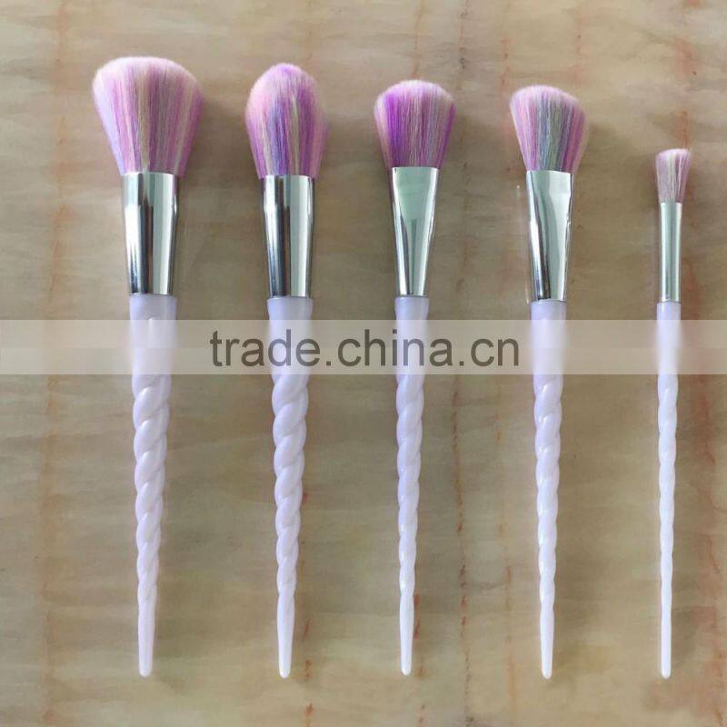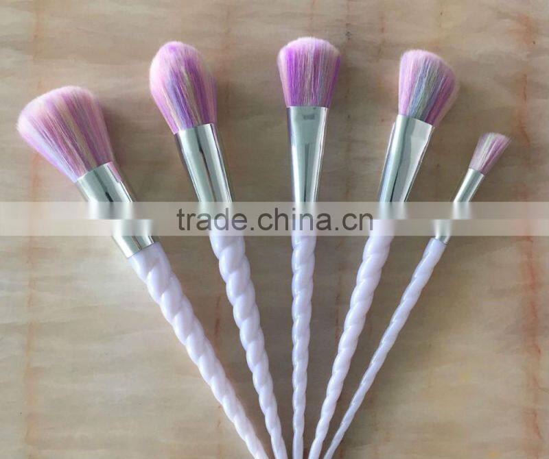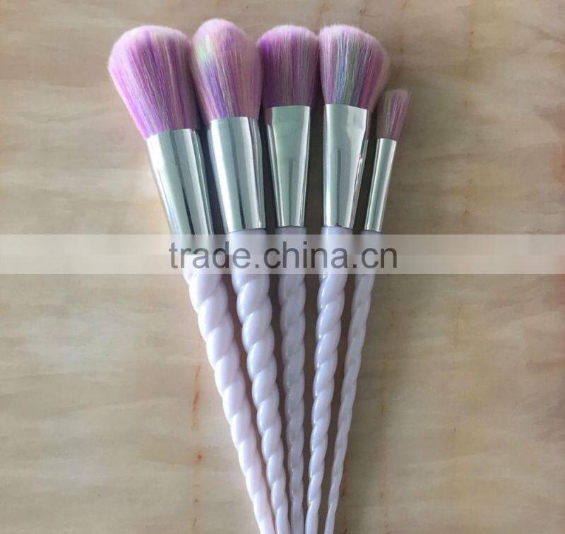 Home > Products > makeup brush > 2017 New 5pcs Unicorn Makeup Brushes Spiral Handle Rainbow Colorful Hair Cosmetic Brushes