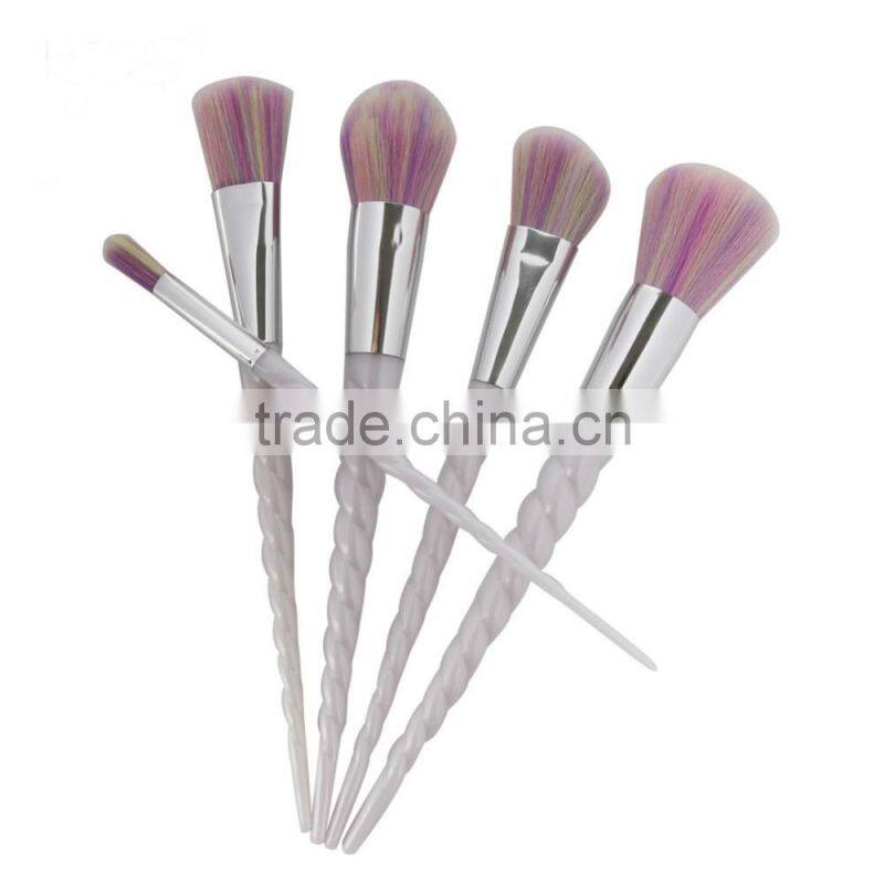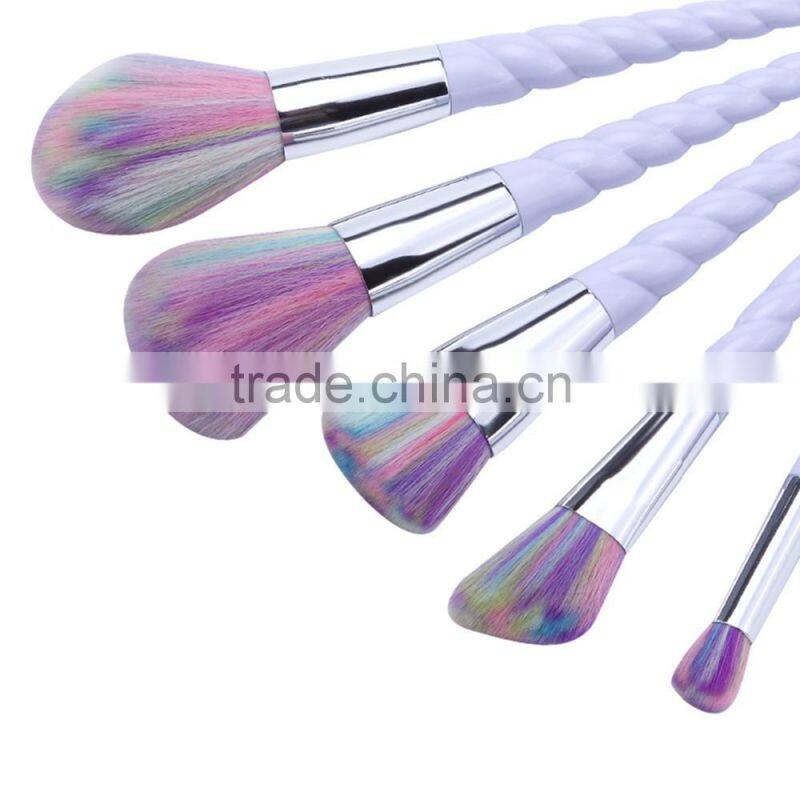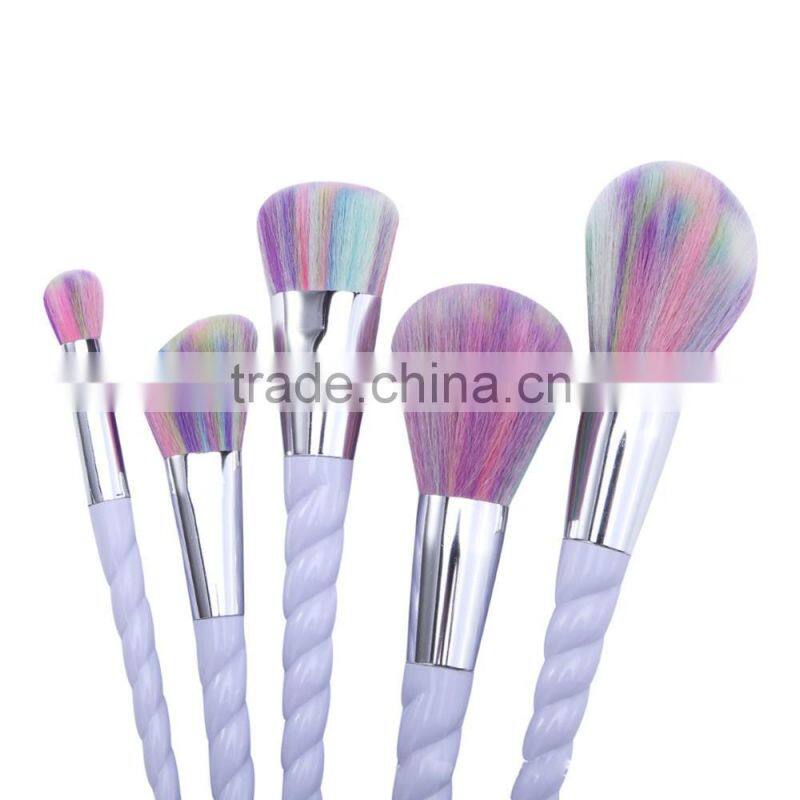 2017 New 5pcs Unicorn Makeup Brushes Spiral Handle Rainbow Colorful Hair Cosmetic Brushes