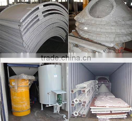 The silo is combined by four main parts: the cover, wall sections, cones and supporting legs. All parts are pressed by special machine and mould, especially the wall sections which can be changed every place on the wall.The silo can be dismantled into many parts when transport, and can be installed with bolts easily, a 100T capacity silo can be assembled by 3 men in 3 days, so it is easy to transport and convenient to use.It is equipped with automatic dust collector, butterfly valve, automatic broken arch and the upper and lower level indicators and other facilities. |