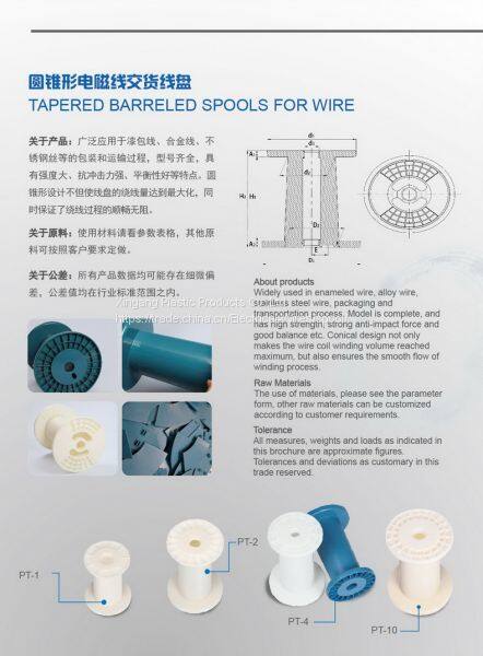 Application: Widely used in enameled wire, alloy wire, stainless steel wire, packaging and transportation process. Model is complete, and has light strength, strong anti-impact force and good balance etc. Conical design not only makes the wire coil winding volume reached maximum, but also ensures the smooth flow of winding process.