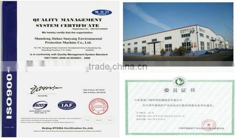 Shandong Jinhaosanyang Environmental Protection Equipment Co., Ltd. is a new high-tech company. Our company is a prestigious, formal, large-scale and environmental protection machinery manufacturer in China, and has an absolute competitive strength in the field. Our company has 300 employees, including technical and management staff members of more than 50. Our company has the advantages of processing technology, large-scale equipment, specialized personnel, design experience, and advanced technology force. We have cooperated with environmental experts and design professors in famous universities and institutions, independently developing production sewage treatment equipment, filtration equipment, pulping equipment and boiler dedusting equipment. We are a comprehensive mechanical equipment development enterprise. Relying on existing conditions, we research and develop the internationally advanced technology. Our company has developed a variety of highly automated and reliable sewage treatment equipment. Products are sold throughout the world, such as Egypt, Vietnam, New Zealand, Finland, the Netherlands, Australia and other countries and regions. Our company has implemented a science-oriented view of development, and consistently pursuing the tenet of "credibility first, quality first, being proactive, innovative and pioneering". We have made brilliant achievement in various industrial fields. We always adhere to the principle of "equality and mutual benefit, Quality First and Reliable Reputation". By joint efforts, we hope to promote both trade and friendship to our mutual advantage. Zhucheng Jinhaosanyang Environmental Protection Equipment Co., Ltd. sincerely welcomes your visit. We hope to cooperate with international guests and friends to create the resplendence together!