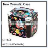 Flower Printed Fabric and Aluminum Frame Case Cosmetic