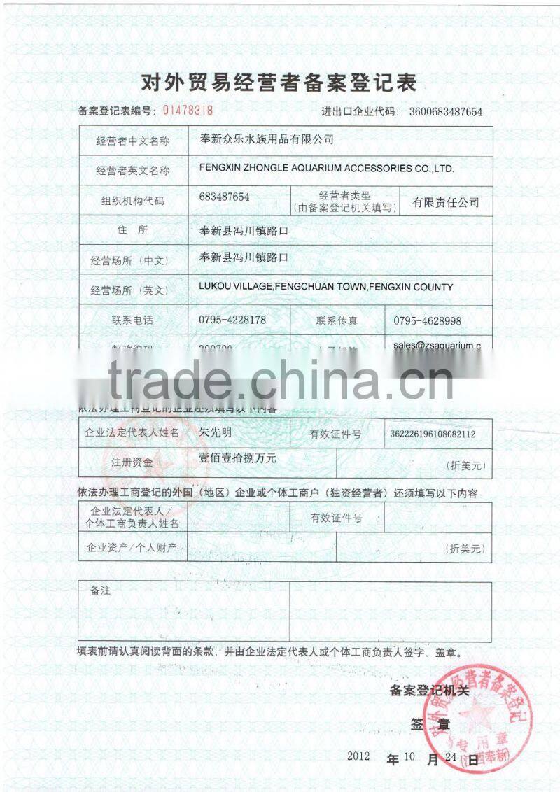 Our factory Fengxin Zhongle Aquarium Co., Ltd has been founded in 1989 in Jiangxi province, and set a sales branch Guangzhou Zhushi Aquarium Co., Ltd in Guangzhou in 2003.