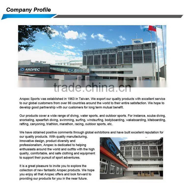 Aropec Sports Corp. is a professional supplier of famous sport products. This mean we will directly serve the water sports industry with our professional lines of diving, surfing, fishing, swimming and other water sports equipment. Regardless of what products you sell, wetsuits, boots, gloves, waders, body boards, surfboards, rash guards and board shorts, you will be satisfied with our world-class quality products and services. Moreover, for a distributor, we are the best when it comes to being a solid and reliable supplier. Being one of the leading manufacturers and exporters of neoprene products in Taiwan Area presently, we develop and manufacture water sports products for many famous brands in the industry through OEM and ODM services. There is no doubt that water sports enthusiasts around the world are using and satisfied with the products made by AROPEC SPORTS CORP.