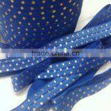 Royal Blue & Gold Metallic Polka Dot 5/8" Fold Over Elastic Ribbon
