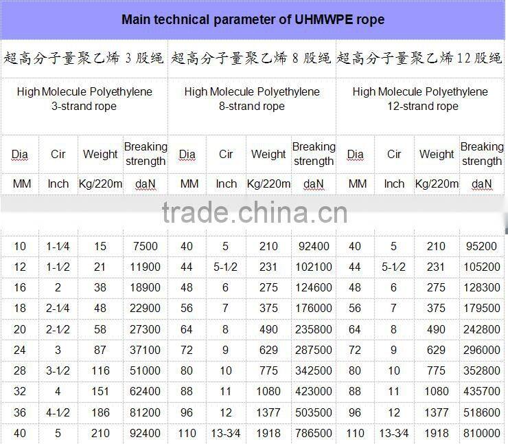 UHMWPE Towing Rope/3/6/8/12 Strand Mooring Line/tug Rope