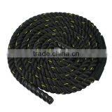 Battle rope/Battling rope | 100% Poly Dacron/PP/PE /PP polyester mixed | 1.5inch (38mm) | 30feet (9m) 40feet (12m) 50feet (15m) 75feet (22.5m) 100feet (30m) | Black (recommended as dirt-resistant); Black with yellow lines, etc. |