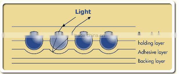 The Role of the Glass beads is to reflect the incoming light to its original light source.This means that the glass beads act as spherical lenses and return the incoming light to the light source when the reflecting layer is set in it’s focus point.