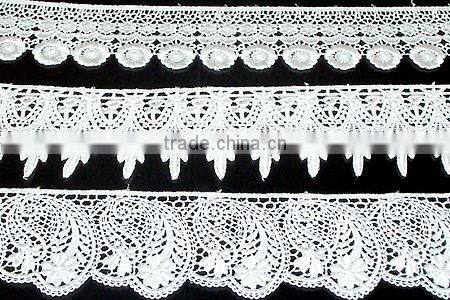 Weave the water soluble yarn into lace fabric, to work out the effect of cow shutter knitted fabrics. Specific usage: 1) Double the cow shutter clothing during weaving the lace fabric, knit the edge by water soluble yarn. 2) Put the finished lace fabric into certain temperature’s water to dissolve the water soluble yarn to reach the stereo effect. Advantage: Simplify the process procedure, save time and labor also the cost.