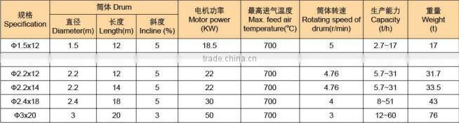 Performance Characteristics of Rotary Dryer:This series drier is used for drying materials with humidity or granularity in
