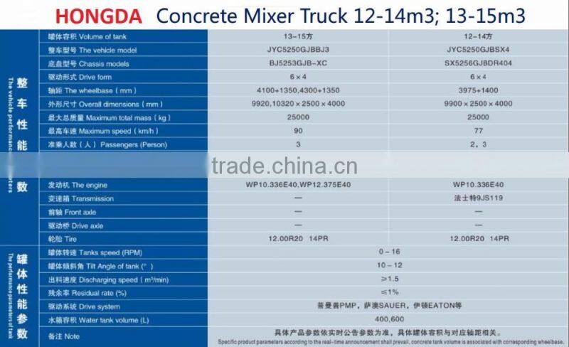 High Quality 12-15 CBM Concrete Mixer Truck for sale 4*2 6*4 8*4