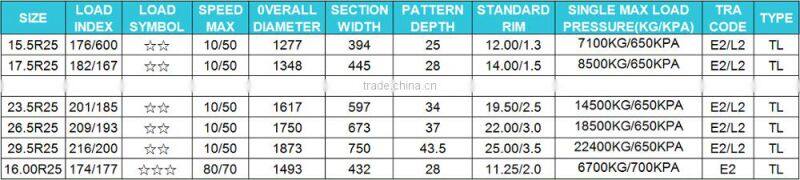 Home > Products > Radial OTR Tyre > 17.5R25 Chinese Brand Radial Otr Tyre Prices