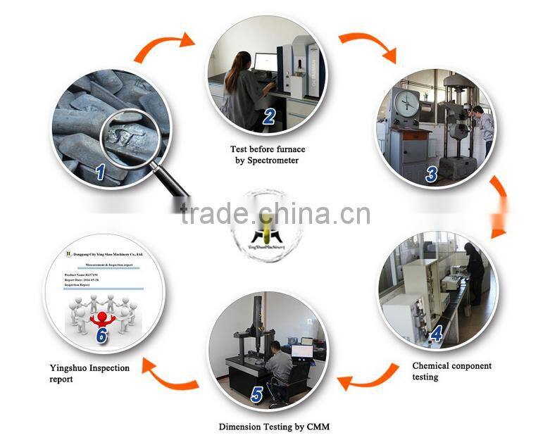 Donggang City Ying Shuo Machinery Co., Ltd (YS-Machinery) is a professional manufacture focusing on forgings & castings. We produce forging & casting parts according to your own specifications via our highly-control production process. Our customized products are mainly used in machinery industry, such as pump, valve, impeller, hand wheel, housing, lathe body and some other machinery parts. For years of export experience, we have established long-term business relations with many customers in Europe and the USA. YS-Machinery was set up in 1999 with the registered capital of RMB10 million and fixed assets of RMB40 million. Our plant area is 28,000 square meters and building area is 12,000 square meters with 158 employees. We have the concept of "Reputation First, Customer First". We sincerely hope to build friendly relationship with the domestic and international friends, and create resplendence together.