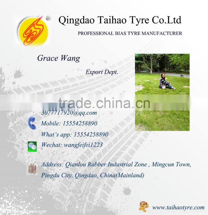 Qingdao Taihao Tyre Co.Ltd is one of the best manufacturers specialized in making bias tyres. The main products areAgricultural Tyre,Skid Steer Tyre,Industrial Tractors Tyre ,Forklift Tyre,OTR Tyre,Trailer Tyre,Sand Tyre,Implement Tyre,Bias Light Truck Tyre ect.All products are certified by ISO9001,CCC,DOTTaihao tyre team of professionals has many years of experience in the commercial tyre business. We use our tremendous resources and facilities to successfully serve all of our customers worldwide. Our expertise includes technical support for our customers, designing product lines, and improving tyre quality