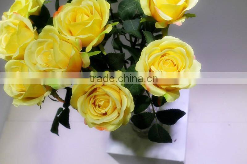 Half opening yellow artificial silk rose has different size as requirement. The perfect focal point in your wedding bouquets for a classic and stylish look.