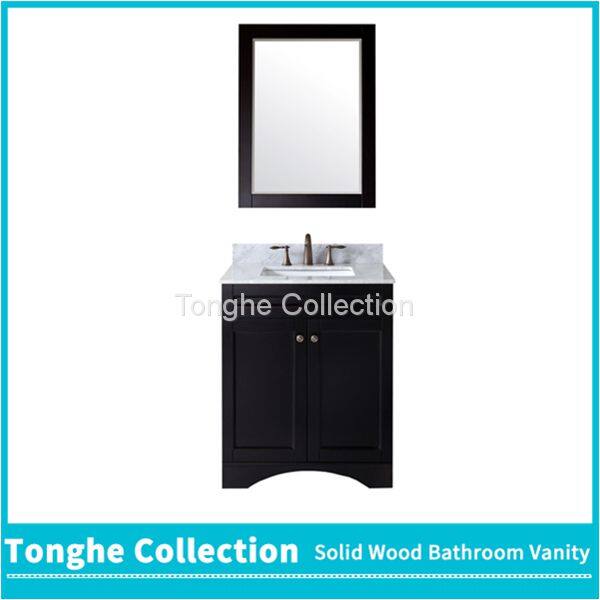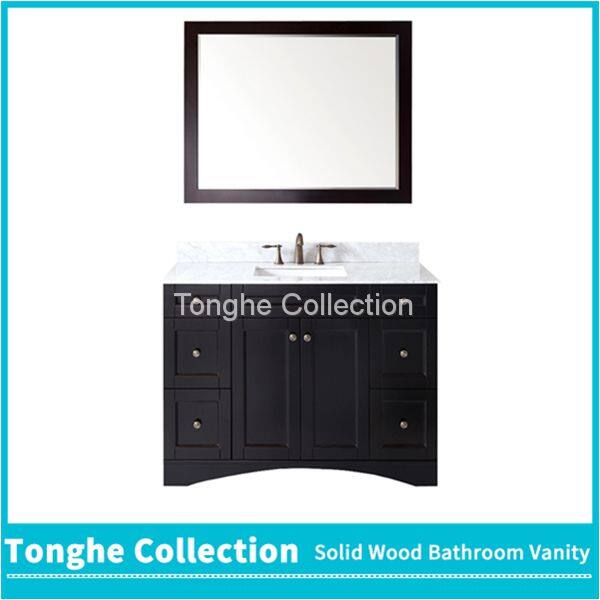 China Solid Wood Bathroom Cabinetry Espresso Painting White Stone Top