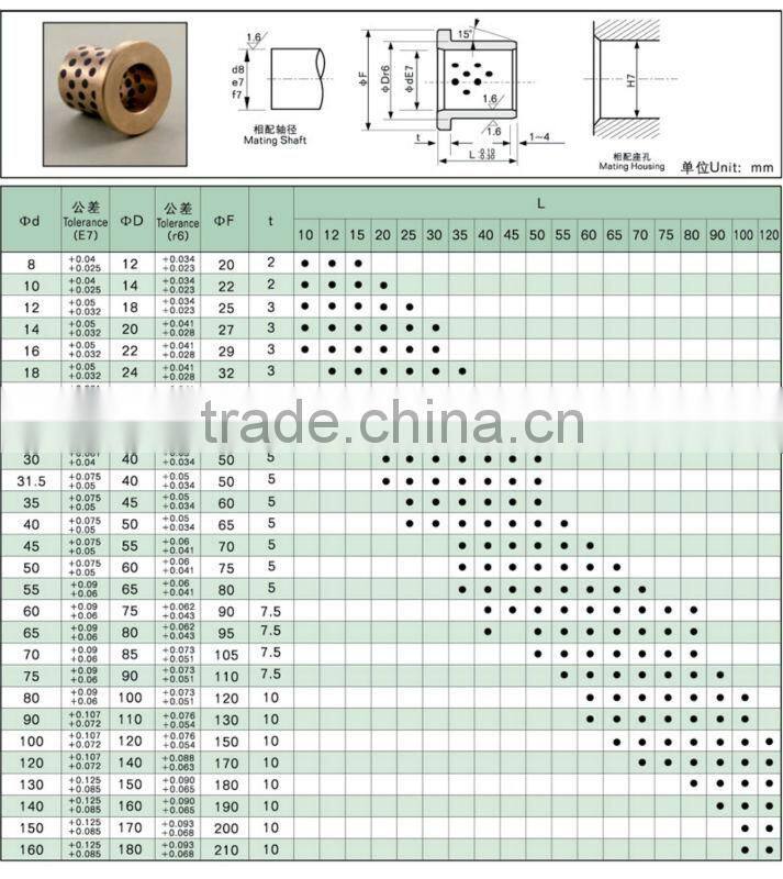 SPF WFF 500-series Flanged Graphite Bush , JFB Brass Graphite Slide Bearing , Self-lubricating Graphite Insert Copper Bushing