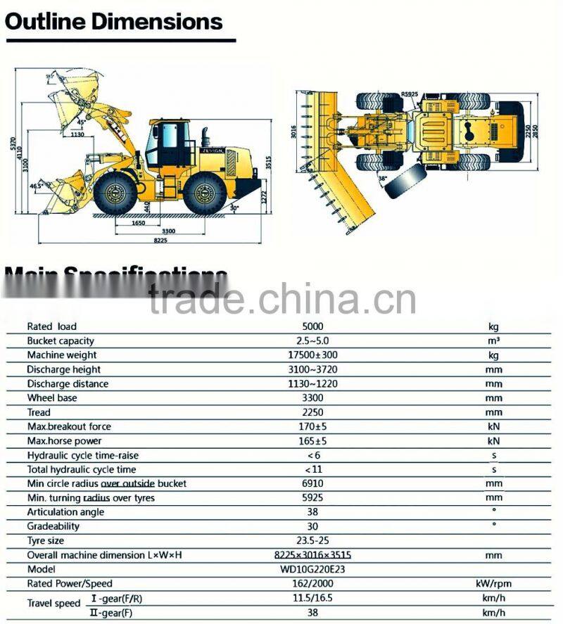| Moving Type | Wheel Loader | Dimension(Long * Breadth * High) | 8225X3016X3515 | |