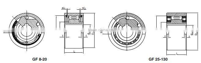 The GF Series freewheels are self centring. From size 8 to size 20, centring is steel on steel, whilst from size 25 to 130, centring is ensured by 2 160 series bearings.
