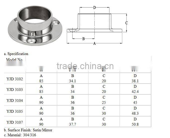 stainless steel handrail fitting base plate steel post base plate