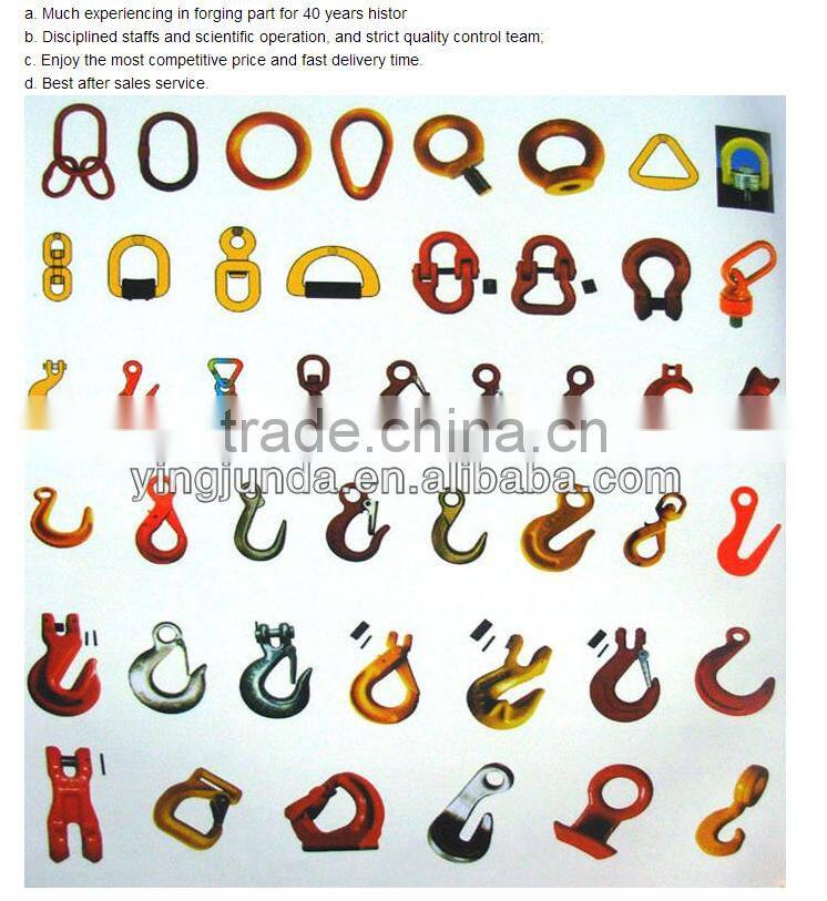 Qingdao YING JUNDA Machinery Co., Ltd. is a professional manufacturer of rigging hardware with well-equipped testing equipments and strong technical team. More than thirty five years, the company has been engaged in designing and making in shackles, turnbuckles, swivels, thimbles, hooks, bolt & nut, links, load binders, rings, wire rope clips, chains, winch & winch bar, steel cables and other rigging parts.