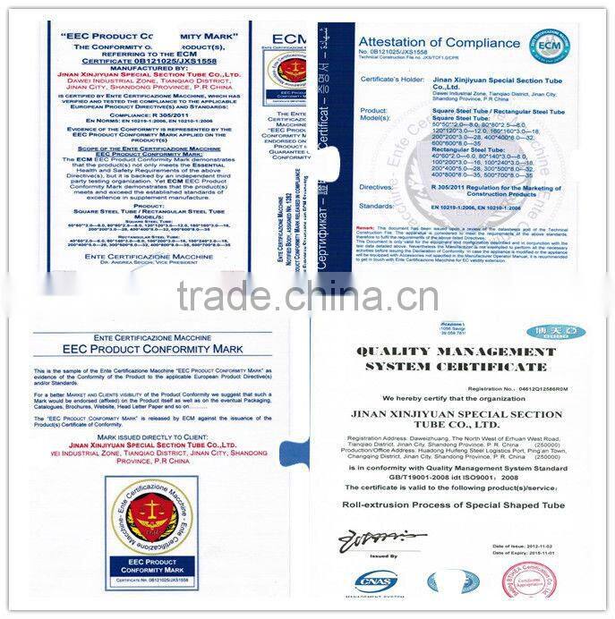 Our company, Jinan Xin Jiyuan Special Section Tube Co.,Ltd ,specialized in manufacturing square and rectangular tube. We have 16 years’ experience in producing all kinds of tubes. Our products have exported to many countries .We are ISO, CE certificated. Our company locates in Jinan,China where is close to Qingdao port. These are how we keep good quality and competitive prices for global valued customers.  | |||||||||||||||