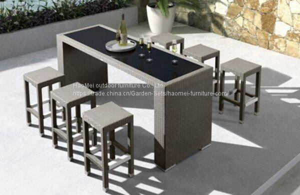 Home > Products > Garden set > Garden Furniture Bar Table And Bar Stooll Aluminum Frame PE Flat Rattan Weave 8mm Tempered Glass