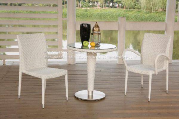 Garden Furniture Leisure Table And No Arm Chair PE Rattan Wicker Powder Coating Aluminum Frame Tempered Glass