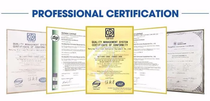 R: Our company is in strict accordance with CE and ISO9001 quality certification system. there are over 200 models of extruders and spare parts.