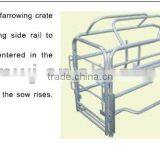 farrowing cratefeatures a pivoting side rail to keep the sow centered i nthe crate as she lays down moving out of the way as t
