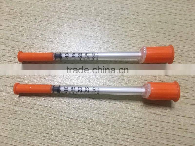 Orange Cap Disposable Insulin Syringe 1ml 0.5ml 0.3ml With Fixed Needle Syringe Factory