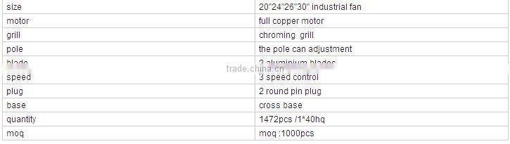 20/26/30 Inch Powerful Metallic Fan/industrial Fan/ Industrial Stand Fan