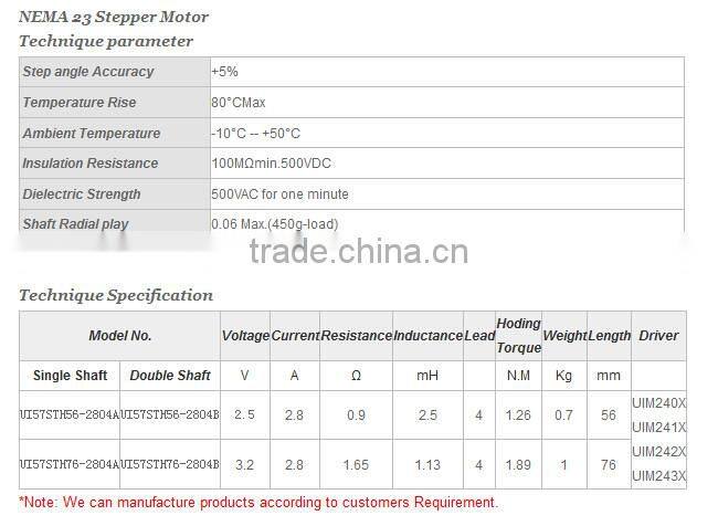 | Step Angle(degrees) | 1.8 | Holding Torque | 0.5 - 1.89N.m | |