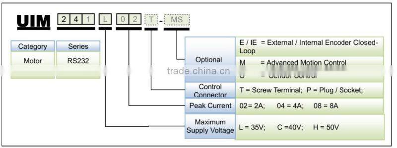 In order to serve you quicker and better, when you order UIM241 series high quality mini stepper motor controller, please provide the product model number in following format.