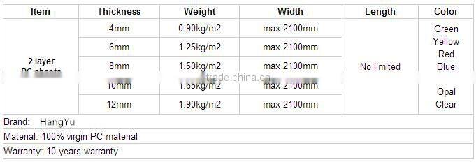 Our company now have following several products: Glittering Polycarbonate Sheet,Multi-wall Structure Polycarbonate Sheet,Greenhouse Polycarbonate Sheet, General Polycarbonate Solid Sheet,Advertising Polycarbonate Sheet,Polycarbonate Embossed Sheet, Polycarbonate Frosted Sheet, Soundproof Polycarbonate Sheet, Greenhouse Polycarbonate Sheet etc.