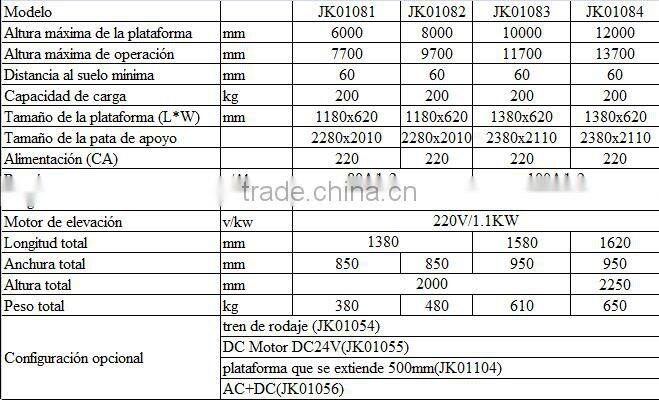 | Max. Lifting Height | 13700mm Jeakue | Table Size | 1380*620mm Jeakue | |