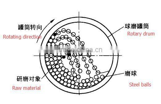 4.The centrifugal force caused by rotation of barrel brings the steel balls to a certain height and impact and grind the materials.