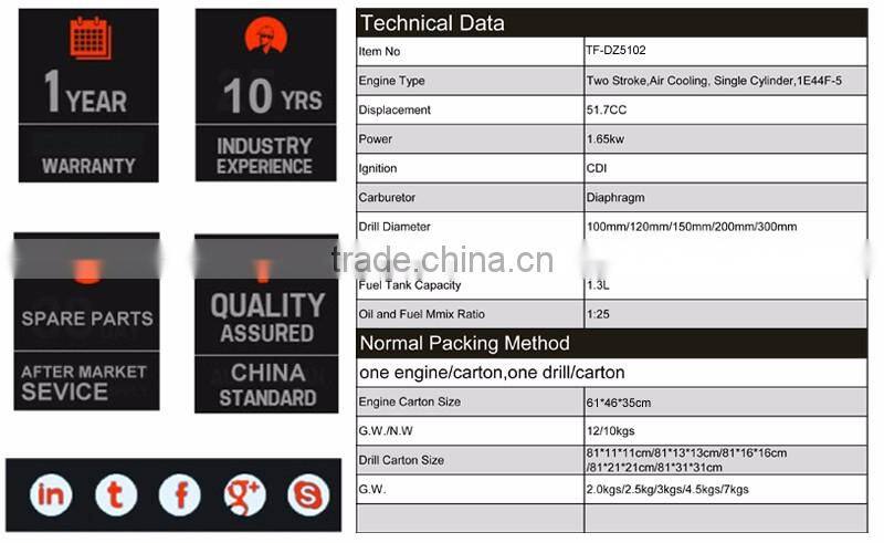 Home > Products > Earth Auger & Parts > 2017 Hot Sales 52cc Ground Hole Drill Earth Auger
