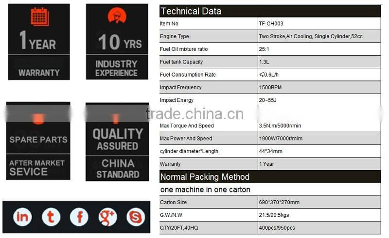 High Quality Gasoline Jack Hammer 52cc Demolition Jackhammer Petrol Drill Tool