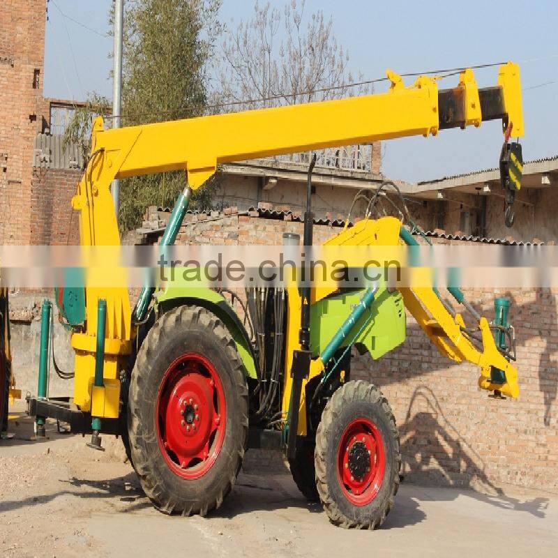 Wade wire rod digging machine is small investment, operation speed, general speed can reach 40-50KM/H, 6m anger with crane machine main part is tractor,equipment with hydraulic system can push drill digging deepth at 6m,diameter of 300-1200mm.can digging hole at diameter of 300-1200mm, deepth <6000mm. well design and with high efficiency, digging 2meters in 1 minute.easy operate, one people can drive it well. can vertical a pole in 3minute with help by 2 other people(handle the balance of pole when it's be lifting by crane that equipment on hydraulic auger ),wheel type digging machine is working in the road and city project.