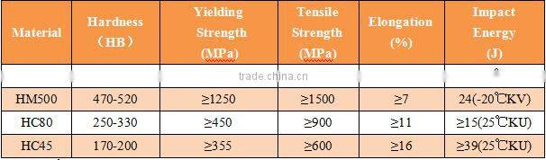 Material | Boron steel ---HM400,HM500, Carbon steel---HC45,HC80 |