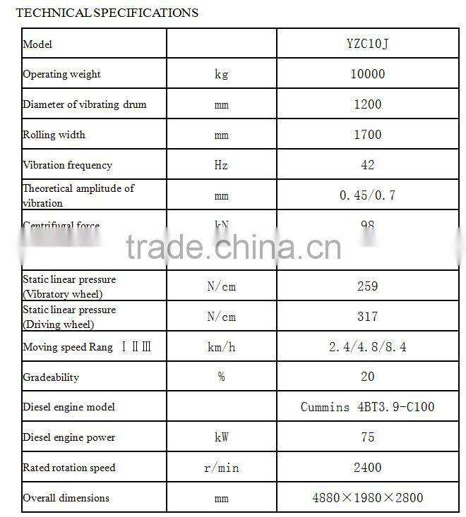YZC10J Double Drum Vibratory Roller With Best Quality and Hot Saling