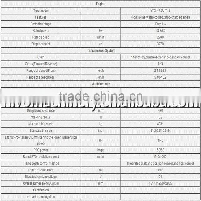 The YTO X804 tractor is developed on the basis of the Italian wheeled tractor chassis technology and adopts the British technology-based engine. The machine body has a streamline configuration. it is famous to world export . It has a low specific fuel consumption and a desirable power economic efficiency. It has multiple gears and a wide speed range. Besides, it is flexible in steering and easy to operate.