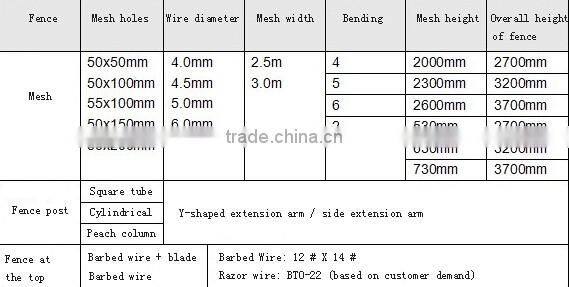 Airport Fence is also called "Y-type grille security and defense" by the V-chip support column reinforced welded mesh, security alarm connections and hot-dip galvanized razor wire composed of defensive intensity and high level of security.