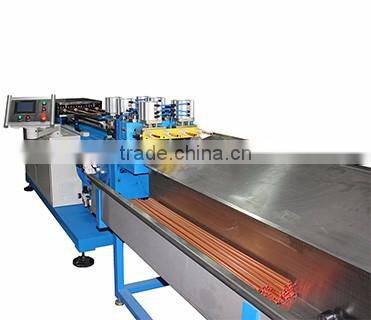 The machine is used for copper / aluminum tube decoiling - straightening - cutting machine, widely used in air conditioner, water heater, airplane and car pipe line system. Equipped with chipless cutting, PLC controller, screw thread / pneumatic servo feeding system and touch screen, to get the high precision work and stable performance.