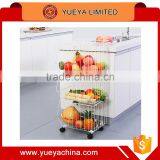 Kitchen Steel Wire Utility Cart Storage 3 Tier Shelf Rolling Wheels Basket